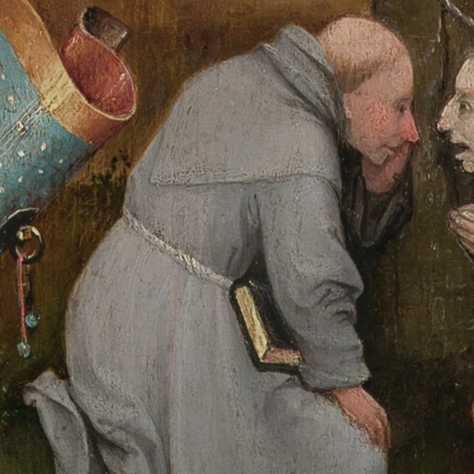 Ein vergleichbarer Gestus zeigt sich zwar auch beim Mönch in der Kreuztragung, doch kann dieser, insbesondere in Hinblick auf die Präsenz der Randfigur, keinesfalls als Selbstdarstellung Hieronymus Boschs betrachtet werden.