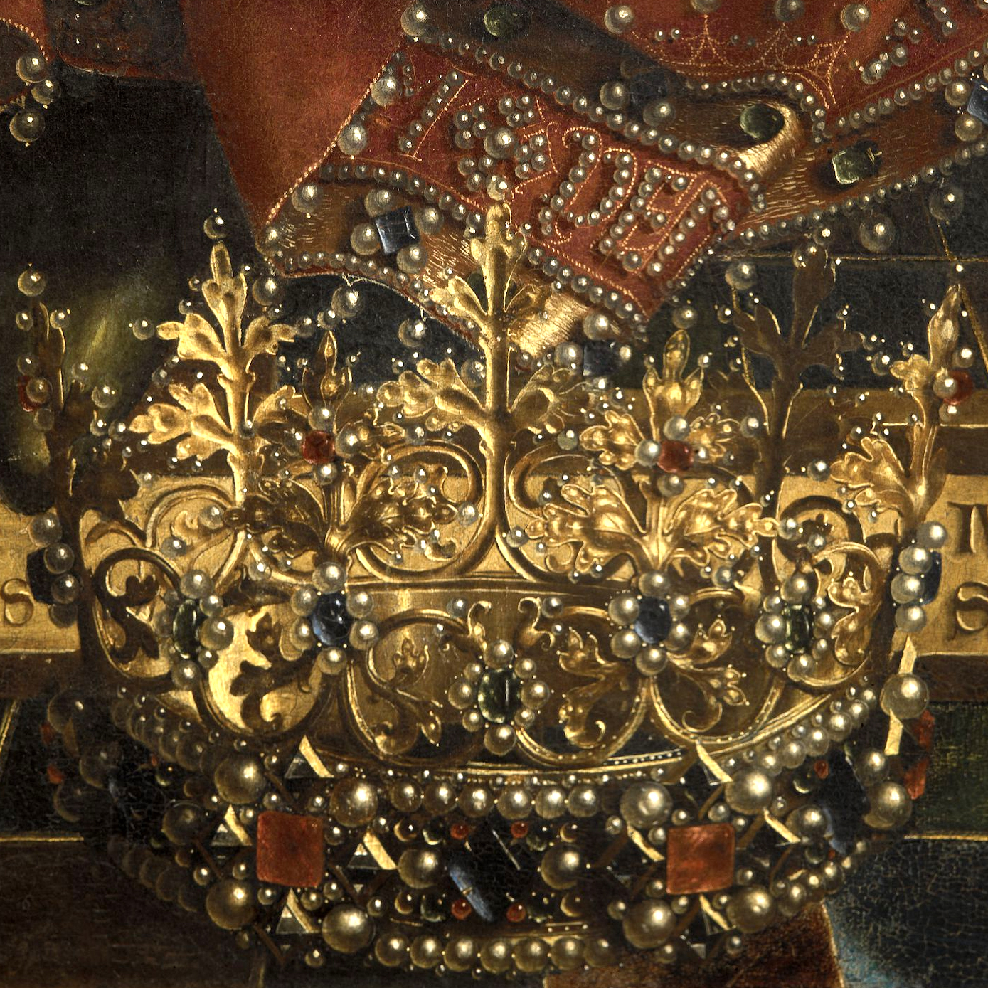 | Lokalisierung im Objekt: | Spiegelung im linken, runden, roten Edelstein in der Krone zu Füßen von Gottvater |