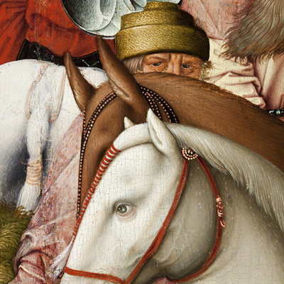 | Lokalisierung im Objekt: | Figur in der Menge rechts vom zentralen Kreuz, hinter dem braunen Pferd |