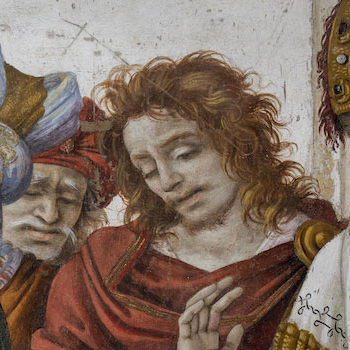 | Zugeordnete Bildprotagonisten: | dunkelhäutige Figur rechts, vorsichtig vorgeschlagen als Sklave Filippo Strozzis etwa von Giorgi; weitere Personen der Figurengruppe in diesem Bildbereich; korrespondierende Figurengruppe am gegenüberliegenden Rand des Bildes |