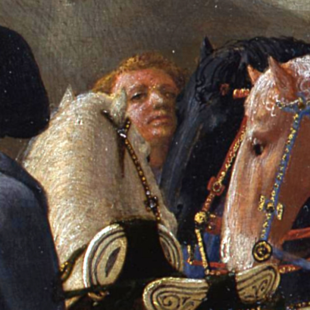 | Lokalisierung im Objekt: | dritte Figur von rechts, hinter den Pferden |