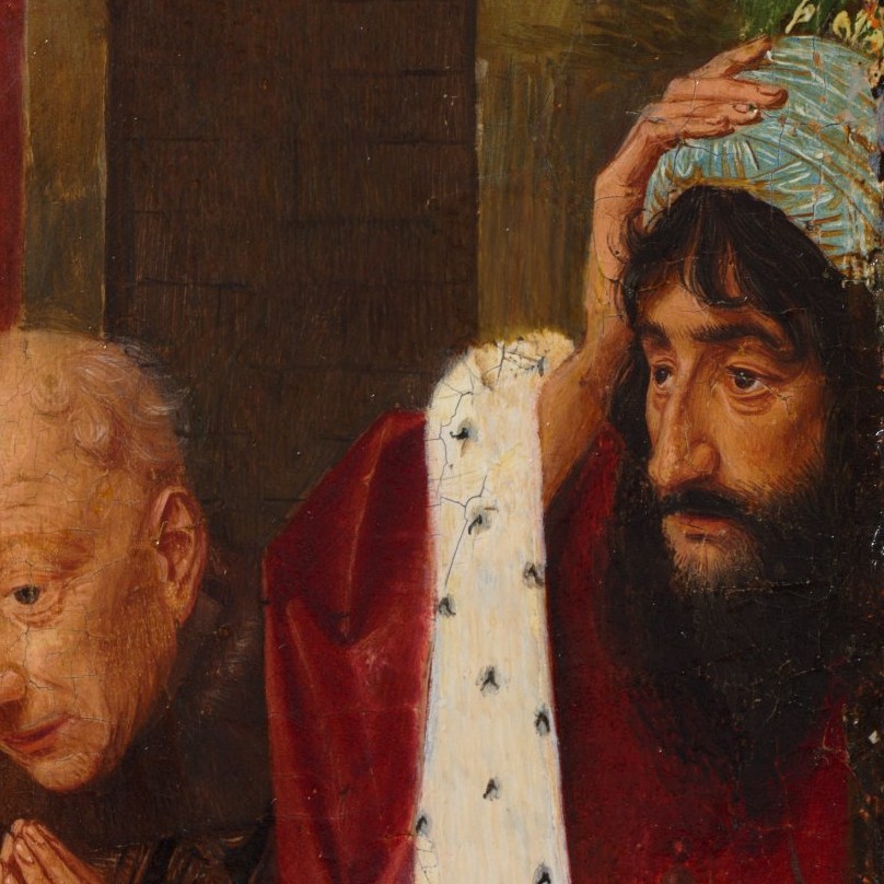 Salomons These zu den bärtigen Männern im Oeuvre von Geertgen tot Sint Jans, die sie als wiederkehrende Selbstdarstellungen interpretiert, wurde bereits wiederholt in Beiträgen zum Maler in der Datenbank diskutiert und abgelehnt.1 Im Fall der Epiphanie in Cleveland2 richtet sich der Fokus auf den König am rechten Bildrand, wobei Salomon ihre Einschätzung von den Überlegungen zur Prager Anbetung ableitet und den Magier in Cleveland lediglich am Rande anspricht.3 Eine Weiterführung der These wird daher nicht vorgenommen.