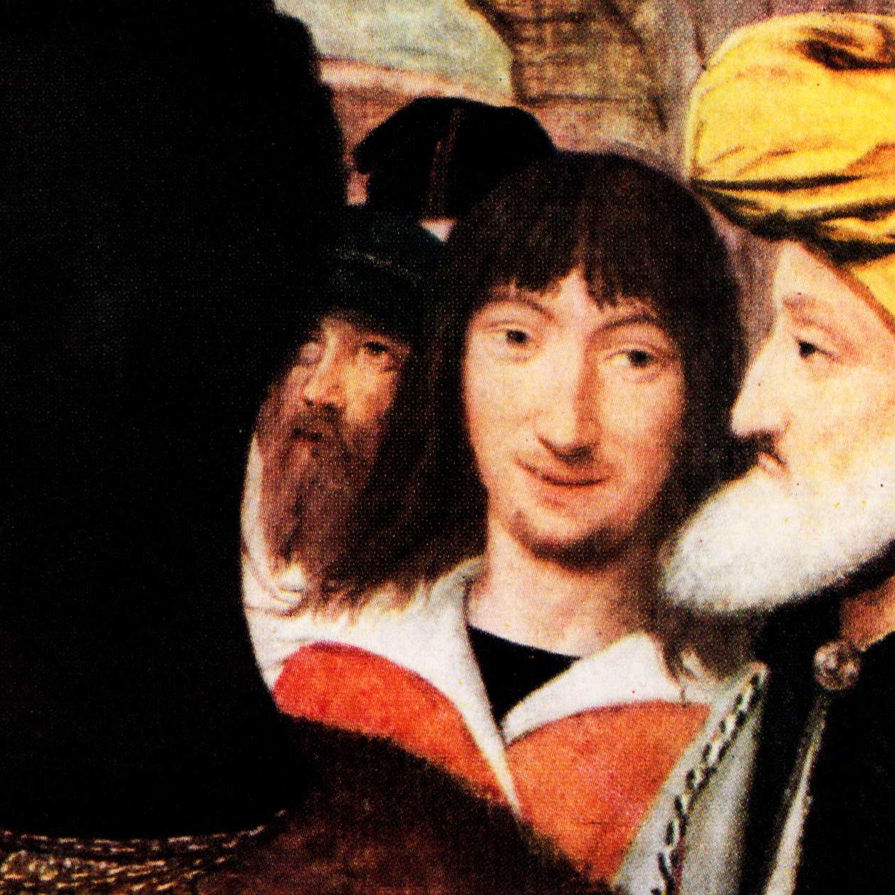 | Zugeordnete Bildprotagonisten: | Männer im Gefolge der Könige, insbesondere die Profilfiguren mit Bart davor und dahinter |