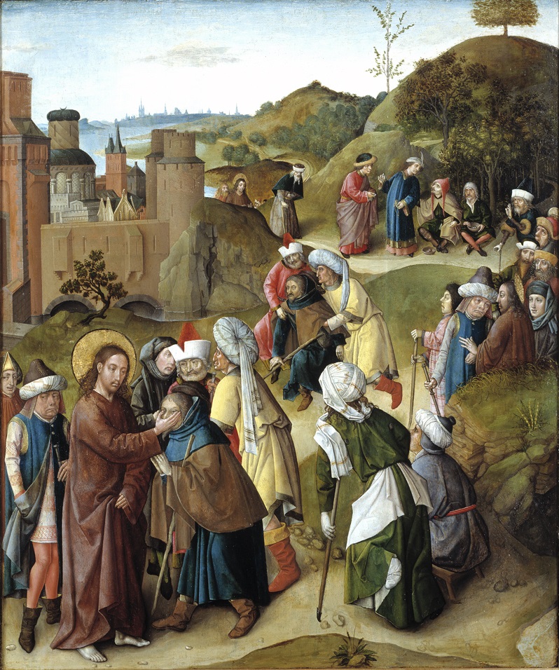 Meister der Einsammlung des Manna, Die Heilung des Blinden in Jericho, um 1470, Utrecht, Museum Catharijne Convent.↩︎