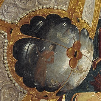 Eine Spiegelung im Schild des Heiligen im Gemälde Hl. Georg1 des Meisters von Zafra wird als Selbstbildnis besprochen und in eine Entwicklungslinie mit den Spiegelungen von Jan van Eyck gestellt, insbesondere mit der in der Paele-Madonna, die sich ebenfalls in einem Schild dieses Heiligen befindet.2