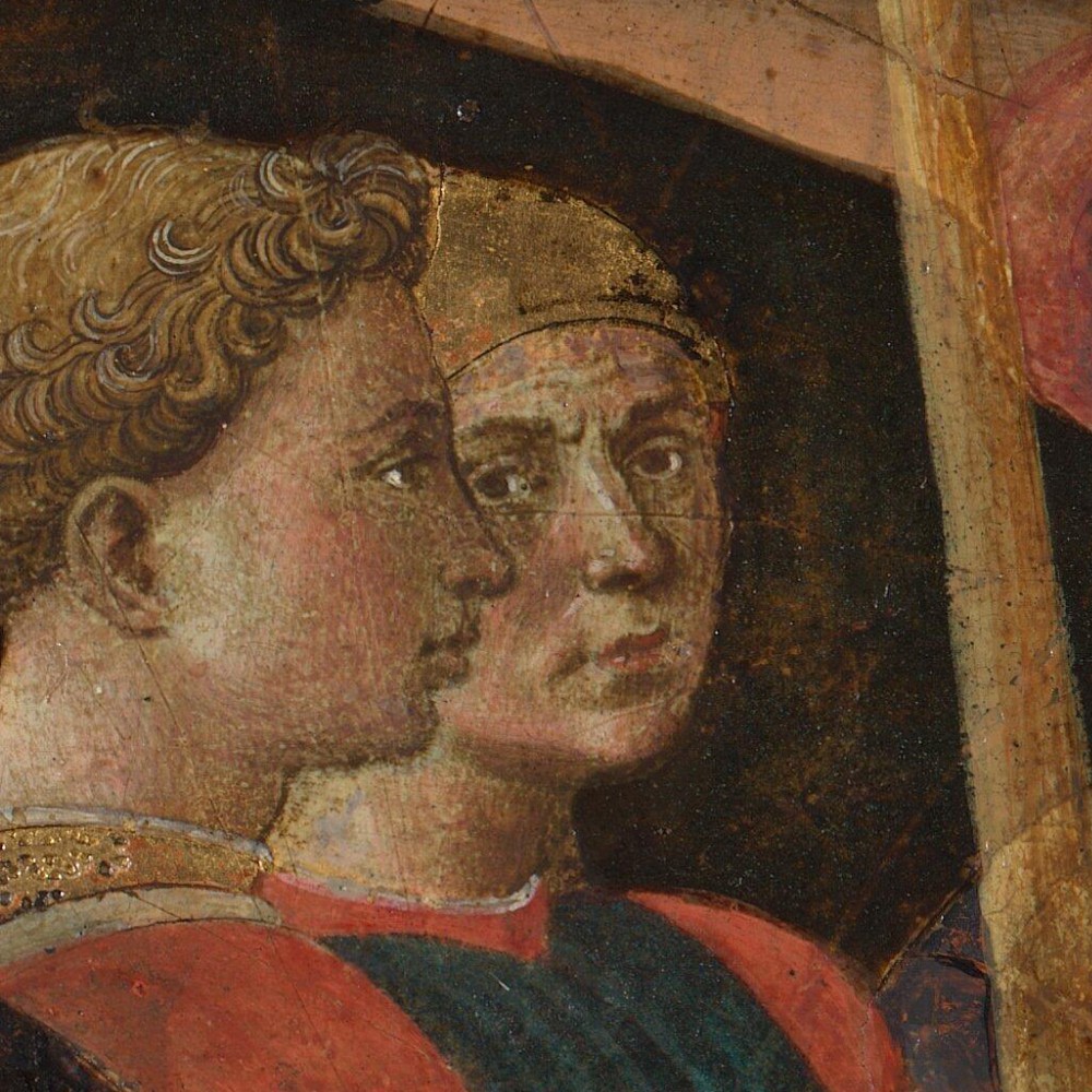 Pesellino war ein viel gerühmter Künstler seiner Zeit, ist aber heute der breiten Öffentlichkeit kaum mehr bekannt. Umso mehr bemüht sich die Londoner Ausstellung „Pesellino. A Renaissance Master revealed“ von Dezember 2023 bis März 2024, ihn wieder dem Dunkel der Vergessenheit zu entreißen: Noch Vasari nahm ihn zusammen mit dem Maler Giuliano Pesello in seine Vitensammlung auf, wobei er von einem Vater-Sohn-Verhältnis ausging, Pesellino war aber tatsächlich ein Enkel Pesellos.1 Die Quellenlage muss schon im 16. Jahrhundert sehr dürftig gewesen sein und viele Werke Pesellinos schreibt Vasari daher irrtümlich seinem Großvater Pesello zu. Auch heute noch sind viele Zuschreibungen problematisch.2 Für das Vignettenbildnis in den Viten Vasaris lässt sich kein Vorbild aus dem Werk eines der beiden Maler finden, daher kann es nicht als Referenz für weitere vermutete Bildnisse dienen.3 Prinz identifiziert zwei Figuren auf den Tafeln mit Geschichten aus dem Leben des hl. Silvester mit dem Künstler selbst. Die eine befindet sich auf einer Tafel mit dem Drachenwunder des Heiligen, die heute in der Galleria Doria-Pamphilj aufbewahrt wird. Die andere ist auf der Tafel mit dem Stierwunder zu sehen, heute im Museum Worcester in den USA. Der gleiche Autor vermutet auch auf einer Cassone-Tafel mit dem Kampf Davids gegen Goliath der National Gallery in London eine Selbstdarstellung Pesellinos. Diese Selbstbildnisse werden in eigenen Katalogbeiträgen kurz behandelt. Von diesen drei Beispielen abgesehen finden sich in der Literatur zu Pesellino keine weiteren Bildnisse, die den Künstler zeigen sollen.