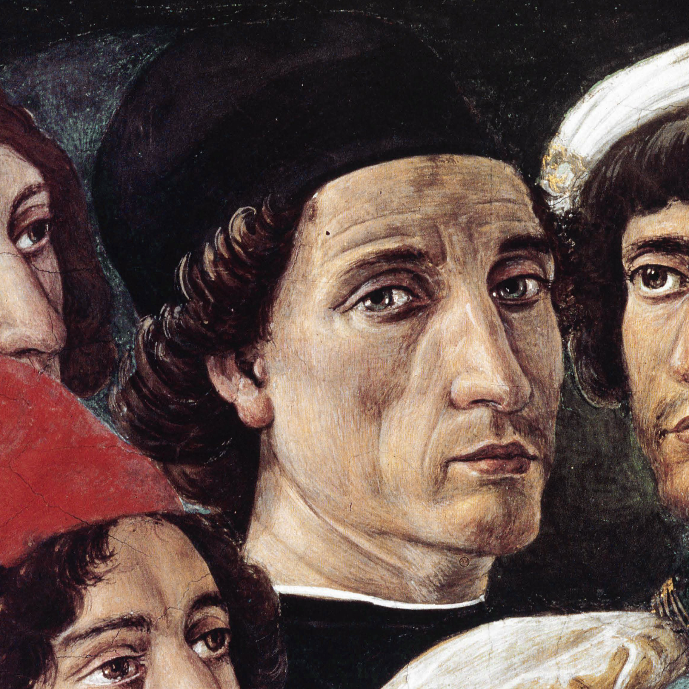 Von Cosimo Rosselli1 hat sich kein gesichertes Bildnis oder Selbstbildnis erhalten. In der Forschung wurden drei integrierte Selbstbildnisse aus den 1480er-Jahren diskutiert, die auch in dieser Datenbank behandelt werden: Zweimal könnte sich Rosselli in den Fresken der Sixtinischen Kapelle in eine Erzählung eingefügt haben (Bergpredigt, Letztes Abendmahl, einmal in die Prozession zum Sakramentswunder von Sant’Ambrogio in Florenz. Im Zuge der Recherchen zu Cosimo Rosselli fiel eine weitere integrierte Porträtfigur auf, bei der es sich eventuell um ein Selbstbildnis handeln könnte Anbetung der Könige.