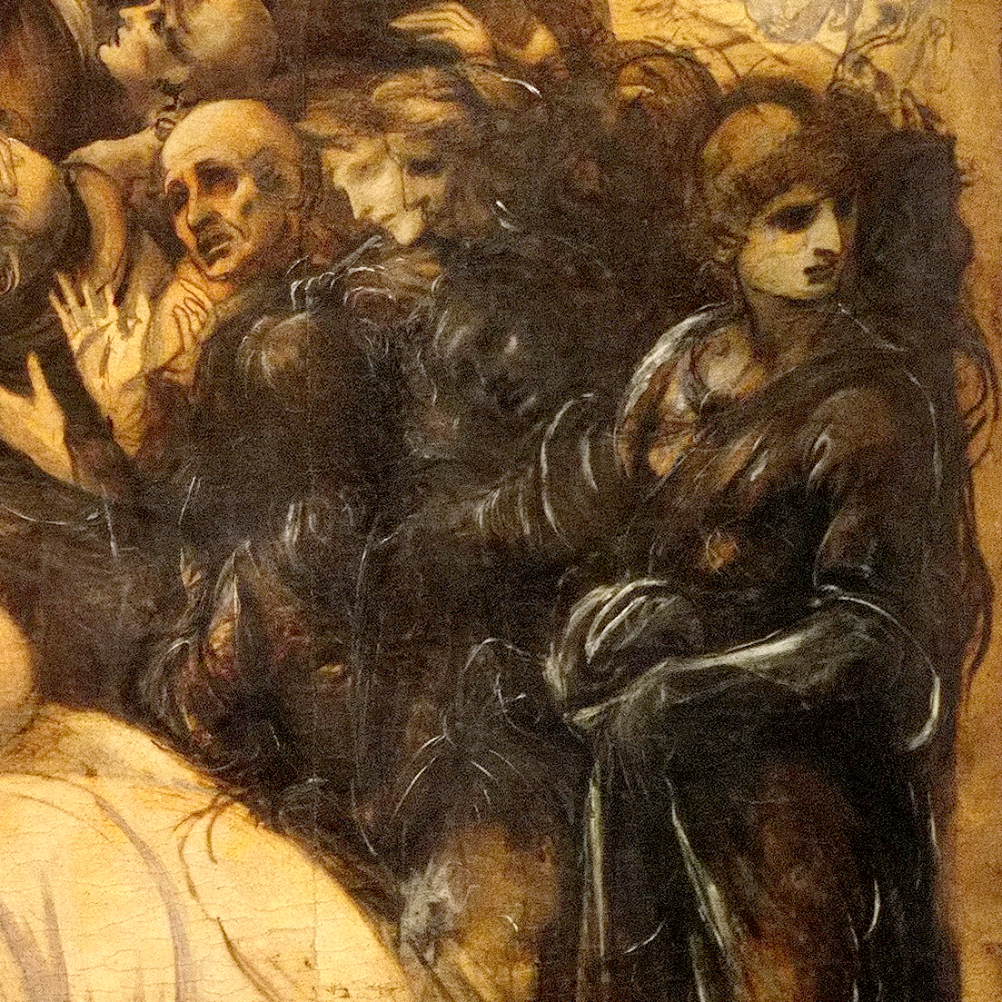 Obwohl Leonardo ein umfassendes Werk hinterlassen hat – darunter ein bekanntes, jedoch umstrittenes autonomes Selbstporträt3 – und obwohl Porträts da Vincis aus fremder Hand vorliegen, wie etwa die Darstellung Platons in Raffaels Schule von Athen,4 die Leonardo verkörpern soll,5 existieren keine verifizierbaren integrierten Selbstdarstellungen des Meisters aus dem 15. Jahrhundert. Eine vereinzelt vertretene These besagt jedoch, dass sich Leonardo am rechten Rand seines unvollendet gebliebenen Gemäldes Anbetung der Könige6 selbst dargestellt haben könnte.7 Dieses Werk, das häufig mit Sandro Botticellis Del-Lama-Anbetung in Verbindung gebracht wird, in der sich ebenfalls ein bekanntes aber umstrittenes Selbstporträt befindet,8 zeichnet sich durch eine Vielzahl unterschiedlicher Gesten aus. Diese Vielfalt steht in engem Zusammenhang mit Leonardos Überlegungen zur Malerei. In seinen schriftlichen Aufzeichnungen widmet sich Leonardo wiederholt der Körpersprache in der Kunst, insbesondere dem Ausdruckspotenzial von Gesten. Er schreibt: „Ein guter Maler hat zwei Hauptsachen zu malen, nämlich den Menschen und die Absicht seiner Seele. Das Erstere ist leicht, das Zweite schwer, denn es muss durch die Gesten und Bewegungen der Gliedmaßen ausgedrückt werden.“9 Dies verdeutlicht Leonardos tiefes Interesse an der Darstellung innerer Zustände durch äußere Bewegungen.